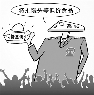 去年,有网友反映高铁上一直卖着40元的盒饭,而15元的低价盒饭一直断供。针对这一问题,全国人大代表、中国铁路总公司总经理盛光祖回应说,铁路部门一直想提供给旅客价廉物美的食品,将来高铁将增加品种,推出包子、馒头、三明治等低价食品。(3月6日《现代快报》)□赵顺清