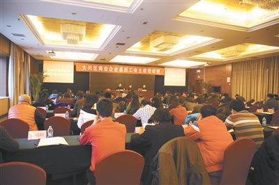 此外,区服务工会还针对辖区企业开展工资集体协商培训,规范企业协商行为。2015年,区服务工会先后于4月、11月两次组织试点企业经营者、工会主席及职工代表开展专题培训。特邀区总工会工资集体协商指导小组负责人,对工资集体协商的操作程序、方法、要点进行深入浅出的讲解,发放《大兴区企业工资集体协商工作规范标准》、《大兴区商业企业工资集体协商重要文件选编》等文件资料。通过培训,企业相关负责人了解了开展工资集体协商的必要性,进一步掌握了工资集体协商工作的流程和操作规范。