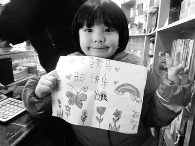 我笑着提醒她。而实际上,当时我的心里想惊喜该是落空了。女儿听到我的问话后,背对着我从书包里拿出一件东西,又双手绕背后朝我走来。“妈妈,节日快乐!”走近我身边,女儿高声说起祝福,同时将藏在身后的东西双手举了起来——那是她画的一幅春暖花开图,上面有书写的祝福语“妈妈,节日快乐”,还有落款——她的名字。