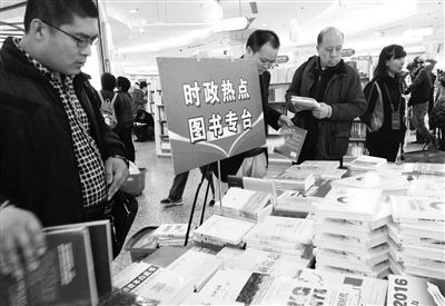 昨天,记者在北京图书大厦看到不少市民在时政热点图书专柜前驻足翻阅有关“十三五”发展内容的图书。《读懂十三五》、《供给侧改革引领“十三五”》、《十三五大战略》等图书从不同角度解析“十三五”发展方向,受到读者高度关注。本报记者 孙妍 摄影报道