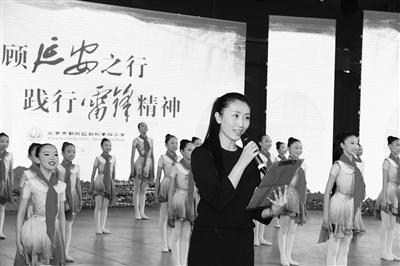 劲松第四小学昨天举办“回顾延安之行 践行雷锋精神”社会实践成果展示会。《剪纸姑娘》、《向着梦想奔跑》……学校金帆舞蹈团的学生翩翩起舞,展示这次游学课程的收获,为全校2000多名同学上了一堂生动的“延安精神”教育课。本报记者 任洁 摄影报道
