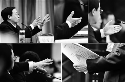十二届全国人大四次会议和全国政协十二届四次会议正在北京举行。代表委员围绕政府工作报告进行审议和讨论,共谋改革发展良策,他们借助手势表达观点,依法履行职责,积极参政议政。图为3月9日,全国人大代表祁万利在审议时发言。新华社发