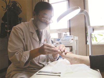 大约十多分钟后,又一位顾客走进了李金明工作的诊室。看到屋内还有等着修脚的客人,这位顾客说:“呦,今天怎么这么多人呀,那我上午还能看上吗?”
