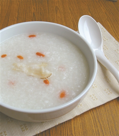 做法:用当归15克,枸杞10克,白米适量。将当归放入带盖的容器内,注入热水、使之膨胀,然后取出切成薄片。共同放入慢炖锅中,煮至烂熟。