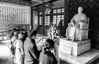 今年是孙中山先生逝世91周年。 3月12日上午,香山公园在孙中山纪念堂组织纪念活动,深切缅怀这位伟大的民主革命先行者。公园职工代表、大学生志愿者在孙中山先生塑像前肃立默哀,敬献花篮、寄托哀思,共同追思孙中山先生的革命精神。本报记者 邱勇 摄影报道