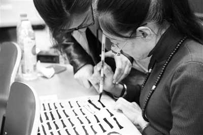 “笔要拿稳,中锋行笔笔尖要保持在线条中央……”3月11日下午,在北方出租汽车公司的大会议室里,来自专业院校书法系的老师正在手把手地教的哥的姐们学写毛笔字。当天,由北方出租公司发起和举办的首都出租行业首个公益书法大讲堂正式开课。