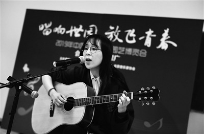 午报讯(记者 陈艺)3月的北京,春寒料峭。而中国人民大学世纪馆里,琴声悠扬,歌声嘹亮。来自北京工商大学的孙小瑶自弹自唱的《夜空中最亮的星》,赢得观众的满堂掌声。