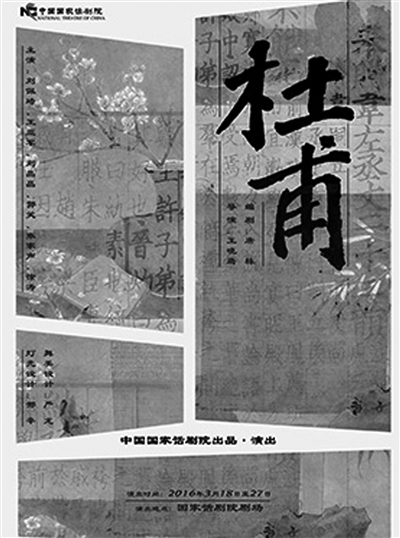 原创话剧《杜甫》刻画了“视国家为生命、以民生为己任”杜甫的诗人形象,展现他的民族大义和文人筋骨,该剧以杜甫励志效国、应试不中、困顿长安、安史祸乱、梦碎弃官、漂泊川渝等经历为主要线索,将杜甫颠沛流离、艰辛曲折的个人命运融汇于时代命运的大背景下,通过杜甫从求官到弃官的变化过程,表现他报效国家的政治抱负和体恤民间的仁爱之心,塑造杜甫正直怜悯、愤世嫉俗、铮铮铁骨的知识分子形象。