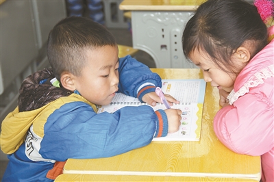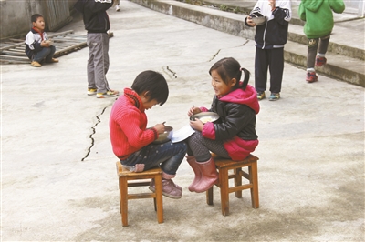 两个小时之后,路通了。他们终于到了之前在河对岸就看到的那所学校。“幼儿园跟小学是建在一起的,两层小楼,六间教室。房子盖好了,但因为没有钱,一直没有投入使用。学龄前的孩子只能在小学里上学,小学中有两个班叫学前班,50多个孩子,年龄都在五岁到六岁之间,所以五岁以下的孩子没有学上。”潘岩还了解到,“学前班的孩子有一半都在住校,他们很独立,跟大孩子一样住的都是上下铺,自己吃饭、叠被子、洗衣服;另外一部分则是走很远的山路上学。”更让潘岩没想到的是,有的孩子两个人共用一本练习册,一个人写着,另一个只能看着。这一幕深深的印在了潘岩的脑子里。