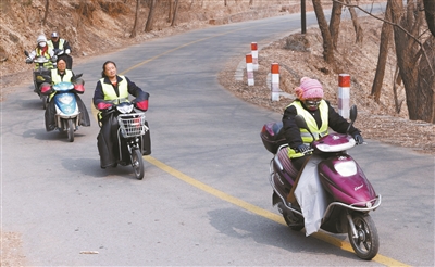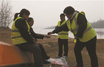下午两点多,她们4人在出发地汇合,简单吃了点东西,喝了几口水便又向山坡上走去,继续巡查。“劝离擅自进入库区野炊、钓鱼的游人、宣传保护水资源的重要意义也是我们的一项工作,碰到出言不逊的游客骂我们也是常事。”王亚明说。