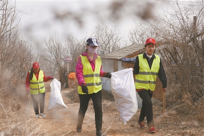 “一次,队员万明红经过一段陡峭的山坡,脚下一滑掉进了两米深的水里,她牢牢抓住垃圾袋子,生怕污染水源,在队员的帮助下才脱险上岸。”说着,她们俩人捡拾的垃圾已经有了大半兜子了。