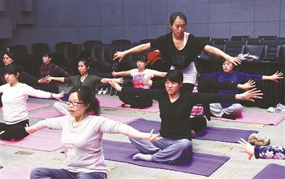 “深呼吸,收腹两臂伸直……”昨天,在北京汽车博物馆,喜爱瑜伽运动的30余名女职工齐聚在职工之家,在教练的指导下,伴着优美舒缓的乐曲节奏,旋臂扭腰,翩翩起舞。