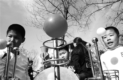 近日,北京最大的室外儿童主题公园“大美湖景儿童乐园”在稻香湖景酒店落户。该乐园的设计以亲近自然为特色,锻炼孩子胆识的拓展塔、笙瑟齐鸣的风铃阵、设计巧妙的圆筒乒乓球台等娱乐设施,让孩子在玩耍中锻炼胆识,发挥创造力。本报记者 孙妍 摄影报道