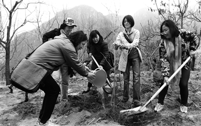 昨天,朝阳门街道总工会组织12个社区联合工会及商务楼宇的80多名工会干部,到平谷塔洼村开展植树活动。据街道总工会相关负责人介绍,开展植树活动就是要让工会干部逐步提高关注环境、改造环境、保护环境的意识。 本报记者 万玉藻 摄影报道