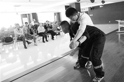 发生灾难怎么办?遇到困难自救?如何在保全自己的情况下营救他人?昨天,东城区龙潭街道的工作人员和社区骨干参加了由2015年北京市市级社会建设专项资金支持项目资助,由北京斯福社区安全服务中心承办的“邻里互助——安全自治社区应急安全项目”之救援技能培训。