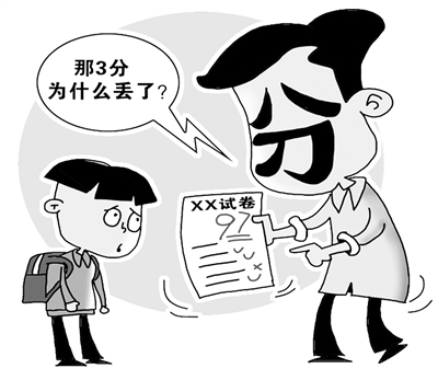 “你什么时候也能考个100分啊?”“才考了97分,那3分为什么丢了?”……日常生活中,不时会听到家长对孩子学习成绩的抱怨和不满。对此,天津社会科学院研究员、中国社会学会家庭社会学专业委员会副会长关颖表示,父母对孩子考试分数的“爱”不该超过对孩子的“爱”。一旦父母们真的把这些分数当作了“命根儿”,孩子本身则被忽略了。(4月10日新华网)□朱慧卿