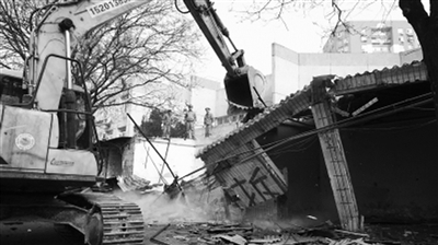 近年来,贴墙违法建设所带来的城市管理问题愈发严重,13日,太平桥西路北侧一溜儿20家“墙皮”房被铲除,拉开了丰台区今年“铲墙皮”行动的序幕。(4月13日《北京晚报》)
