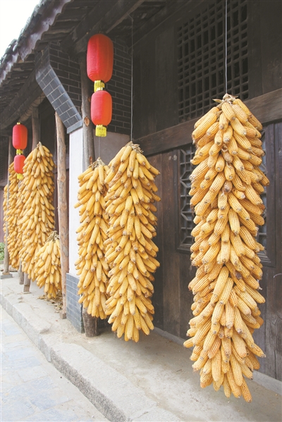 临街的墙面,仍保留着老式铺子的格局,一块块竖立的木板既是墙面,也是店门,里面的人或闲适,或淡然,或质朴,全无大都市人的那种珠光宝气和清高浮华,一如镇外小河水那样平实和清纯。有的店铺门外挂着一串串金灿灿的玉米,为古镇增添了一份乡土气息。