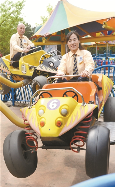 参加现场活动的200名的士司机来自首汽、北方、渔阳、金银建等首都主要出租汽车公司。平时这些司机奔忙在道路上为乘客服务,今天,他们和默默支持他们的家人一起成为欢乐的主角。在北京欢乐谷的各个主题区域,都可以看见快乐的的士家庭。