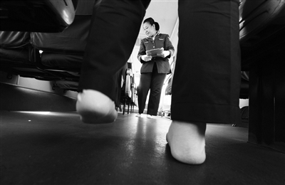 戴上白手套,穿上白袜子,检查车厢内的犄角旮旯有无灰尘,下车后白手套、白袜子依然洁白如新……昨天,公交客三分公司特9路内环服务专业和工会联合开展车辆清洁大检查,严格的卫生标准对于司售人员来说早已习以为常。本报记者 于佳 边磊 摄影报道