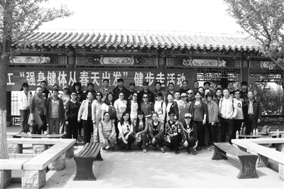 花乡总公司工会主席徐建文迈着轻快的步伐,不时地为来自下属四家专业公司的60名职工“加油”。酷爱登山运动的他兴奋地对记者说:“平时大家各忙各的,这下借着‘健步走’的机会,都在这里见面了。你看他们聊得这亲热劲儿!”是呀,参加“健步走”活动不仅让职工身体得到舒展,还增进了各单位职工之间的友谊。