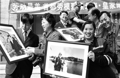 “照片拍得真好!太感谢了!”4月25日,北京劳模摄影家协会将拍摄的北海公园职工大照片做成11幅镜框,送给职工,收到照片的职工开心不已。除了11幅大照片外,协会还送出了60幅照片,有公园职工,也有北海风光,这些照片将在公园橱窗进行展示。本报记者 余翠平 万玉藻 摄影报道