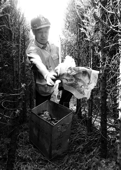 有些塑料袋挂在树上,更不好清理。再加上很多绿化地都在金色护栏以里,车进不去,职工们只能一袋子一袋子的往外扛垃圾。平常,这个班组每日能清扫出来4~5吨的垃圾。如果要赶上修剪花枝树干、清扫落叶,垃圾就更多了……尽管很辛苦,但是王水清和职工们都没有怨言,都为自己的工作感到骄傲,为努力干好这份工作而努力。