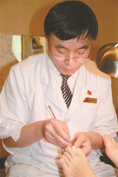 李金明是百年老店清华池的一名高级修脚技师,曾于1995年获得全国劳动模范荣誉称号。