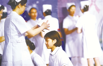 在第105个国际护士节即将来临之际,北京卫生职业学院隆重举行庆祝5·12国际护士节2015级护生授帽仪式暨护理系成立大会。北京地坛医院红丝带之家护士长王克荣、北京世纪坛医院护理部主任刘俐惠、北京阜外医院护理部主任李庆印等护理界前辈、学院优秀毕业生代表以及学院领导和500余名护理专业师生参加了大会。