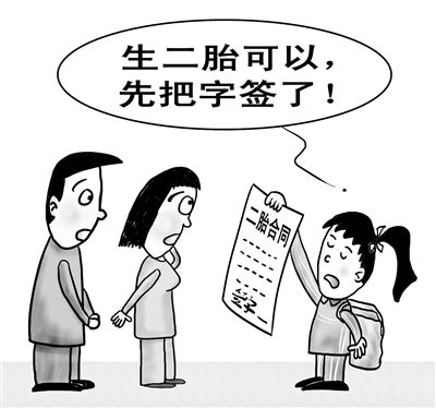 如果多了个小弟弟或小妹妹,大娃的心情会怎样?虽然父母口中那个小弟弟或小妹妹目前连影子都没有,但9岁女孩小雪(化名)却早早做起了打算——拟定《二胎合同》,规定了甲乙丙丁(父、母、自己、未来的小弟弟或小妹妹)四方的权利与责任,确保自己今后权益不会受损。近日,当看到宝贝女儿正儿八经地拿出合同让他们签字时,王女士和丈夫惊讶之余,不禁莞尔。(5月10日《重庆商报》)