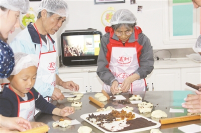 大家根据自己的想法,有的揉面,有的擀皮。一位老人对记者说:“我今天带着小孙子来,一方面是让他体验动手的乐趣,另一方面是告诉他不能忘记老北京的味道。”一位年轻的妈妈正在教女儿怎样擀皮儿。她说:“我们这代人对义利面包的记忆不如父母,到了我女儿这一代,对老字号品牌更陌生了。我带她来,就是想让她了解并感受国货食品,同时提高她的动手能力。”