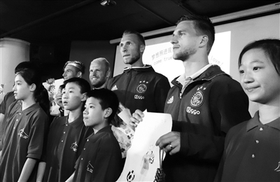 近日,一场名为“梦想照进现实·足球传递爱心”的公益活动在北京工体富国海底世界举行,荷兰阿贾克斯足球俱乐部全体成员到场为活动助威。此次活动专为偏远贫困地区和“北漂”家庭的喜欢足球的孩子所举行,圆他们的一个“足球梦”。本报记者 孙妍 摄影报道