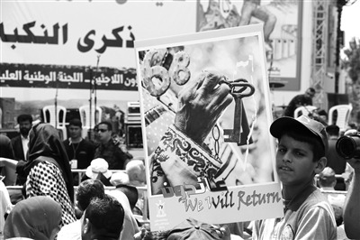 5月17日,在约旦河西岸城市拉姆安拉,一位巴勒斯坦少年手持“我们要回归家园”的牌子参加集会活动。当日,巴勒斯坦官方组织游行和集会,纪念第68个“灾难日”。1948年5月15日,阿拉伯国家同以色列爆发了第一次中东战争,近百万巴勒斯坦人流离失所,成为难民。后来,巴勒斯坦人将5月15日作为民族“灾难日”。