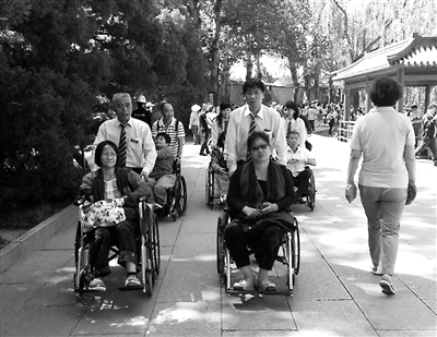 不仅提供用车服务,在游览过程中,的哥的姐还全程陪同肢残朋友,为他们推轮椅,兼当导游,一路有说有笑。“北京的士司机真棒!”肢残朋友评价道。