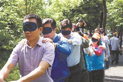 5月15日是全国助残日,“我是你的眼”视力障碍青少年自然体验项目在重庆江北铁山坪森林公园正式启动。该活动着力帮助有视力障碍的青少年体验大自然,通过触觉、听觉、嗅觉等器官,让他们亲近自然,感受自然和生命的可贵。现场10余位社会志愿者蒙上眼罩,在“自然体验师”的带领下感受着视障人士的日常生活。