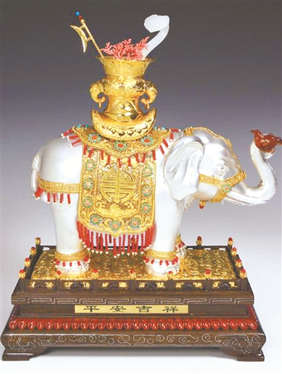 当程淑美最终回归花丝时,她大胆地将花丝镶嵌与玉雕、木雕、漆器等多种工艺相结合。这种将立体造型与传统花丝技艺相融合的理念,开创了花丝镶嵌工艺的新境界。