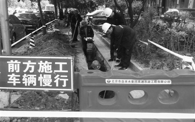 由于换管工作多在狭窄胡同里、人行辅道上进行,路面开挖后,供通行的空间变得更为局促。做到“施工现场必须干净”,清晰的管理思路是关键。管哥针对每条管线,绘制现场平面布置图,显示管件材料、机械设备的码放位置,以及挖出渣土的临时堆放位置,做到界限清晰、规整。