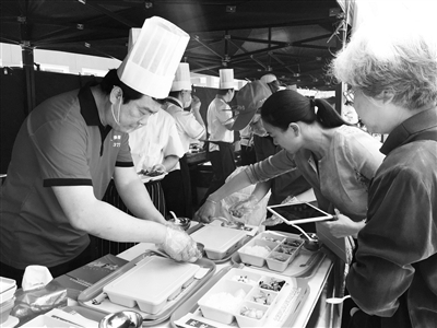 鱼香肉丝、醋溜白菜、杏鲍菇牛柳……当天一大早,为全市几百家中小学供应营养餐的近20家参赛企业,把厨房操作间全部挪至大兴京育物流中心。参赛企业每家派1名厨师、1名营养师和最多两名助手,为10岁学生设计一款12元的营养餐,分规定食谱和自选食谱两部分,包含四个菜,须在1个小时内现场制作完成。