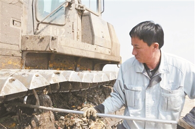 太阳渐渐从东方升起,气温也越来越高。一座垃圾堆上,一辆车子在来回不停地行驶着。不足两平方米的驾驶室内,坐着一位表情严肃、身材瘦长的司机。不到一会儿,司机的额头上便爬满了汗珠,一滴滴汗水滴在了司机的前胸、肩膀和后背上,然而司机却一直在认真工作着,丝毫没有注意到汗水已经浸湿了衣服……这就是北京固废处理有限公司赫赫有名的“拼命三郎”——阿苏卫机手班班长王仕永。