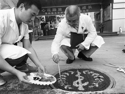 昨天,“心花路放·与你共成长”北京大学肿瘤医院的第四届井盖文化节开幕。活动中,北京大学肿瘤医院的医护人员拿起画笔,在院内大大小小的井盖上玩起“涂鸦”。不到一个小时,平日里灰头土脸的井盖摇身变成一幅浓墨重彩的京剧脸谱,一些患者也自发加入其中,与医护人员一起玩起绘制缤纷井盖。