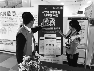 “现场扫码即可成为平安地铁志愿者,动动手指就能及时反馈不文明行为。”近日,北京平安地铁志愿者APP客户端上线,为此,地铁亦庄线万源街站区开展了一场宣传活动。
