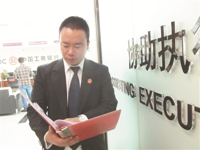因路上堵车,黄华到达银行时,银行已开门十多分钟。上二楼后,黄华先在取号机上取了个号,然后坐到一个柜台前。“来啦。”因是熟人,银行的几位大姐和黄华打着招呼。这里是工商银行全国唯一专门接待全国公、检、法查询的办公区,墙上挂着两面锦旗,一面是西城法院送的,一面是丰台法院送的。