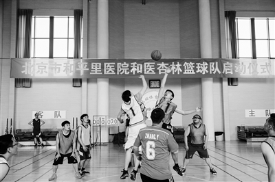 为加强医院文化建设,进一步丰富职工业余生活,提高医院的凝聚力,日前,北京市和平里医院“和医杏林篮球队”成立仪式在地坛体育馆篮球馆内举行,该队由该院27名职工组成。成立仪式当天,该队还与东城区疾病预防控制中心篮球队进行了一场友谊赛。