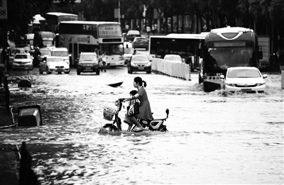 6月1日,武汉市遭遇大到暴雨,全市多处出现积水,其中武昌地区交通受到较大影响。图为武汉市武昌区民族大道严重积水。