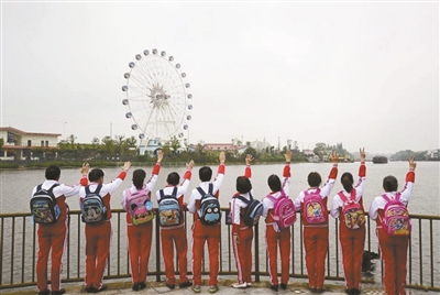 国际“六一”儿童节前夕,十余位平均年龄近60岁的大叔大妈身着小学校服,背上了卡通书包来到长沙柏乐园玩起了游乐设施,以此追忆早已逝去的童年。
