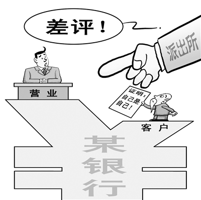 6月2日下午,一名老人到某派出所,请求开具一张身份证就是他的证明。大爷告诉民警,他用身份证在某银行办了一张存折,今天取款时,银行称他本人身份证号码与开户号码不符,不予取款。因此需要户籍地派出所开具证明。户籍民警在“证明”上对需要群众开具该证明的工作人员吐槽:你们自己工作造成的失误,为何要把群众推到派出所?”并打出“差评”。(6月4日荆楚网)□赵顺清