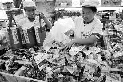 端午节即将到来。记者昨天在北京稻香村第三营业部的门店和护国寺小吃起源店里看到,选购粽子的顾客排起了长队,销售员不断补货。据稻香村门店售货员介绍,目前来看,传统的小枣、豆沙等口味仍然是北京市民的“最爱”。本报记者 孙妍 摄影报道