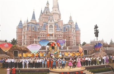6月16日,上海迪士尼度假区正式开园迎客,“米奇大街”、“奇想花园”、“探险岛”、“明日世界”、“宝藏湾”以及拥有奇幻童话城堡的“梦幻世界”园区等六大主题园区同时向游客开放。作为迪士尼规模最大的海外投资项目,上海迪士尼度假区备受世人瞩目。图为迪士尼卡通人物以及演员们在开园仪式上载歌载舞。新华社发