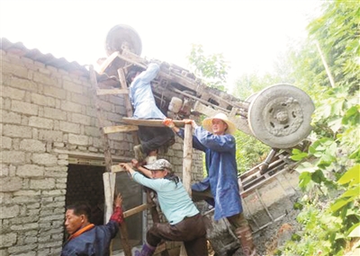 6月13日,湖北襄阳市谷城县一农用三轮车下坡途中失控冲出路基,“飞”上一民房屋顶,驾驶员应急逃生时腿部受伤,手臂被驾驶室压住,身体处于悬空状态。为防止驾驶员摔落,附近民众利用梯子和木板托举起驾驶员身体。消防官兵赶到后,救出驾驶员并送医。