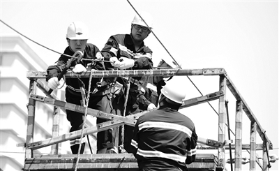 17日上午,电车客运分公司供电所工会组织线路工程队职工针对电车线网、暑期汛期特点等,开展了专业技术演练。演练现场模拟了电车线网断线,职工通过供电调度及时发布指令,接到指令后供电架线车迅速出动,到现场后架线工排查故障,进行抢修作业。演练持续了3个小时,共30余名青年职工参与。本报记者 陈艺 摄影报道